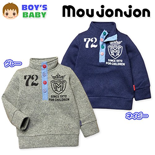 ベビー服 男の子 トレーナー 長袖 Moujonjon ムージョンジョン 裏起毛 ニットソー スタンドカラー 男児 ベビー (2.ネイビー/90cm)
