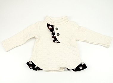 キルト生地です。毛羽立ちと右袖に茶色いシミあり。お腹にうっすらピンクのシミあり。外遊びや洗い替え用にいかがでしょうか?