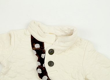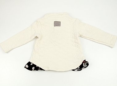 - キルト生地です。毛羽立ちと右袖に茶色いシミあり。お腹にうっすらピンクのシミあり。外遊びや洗い替え用にいかがでしょうか?