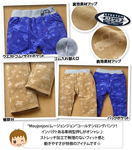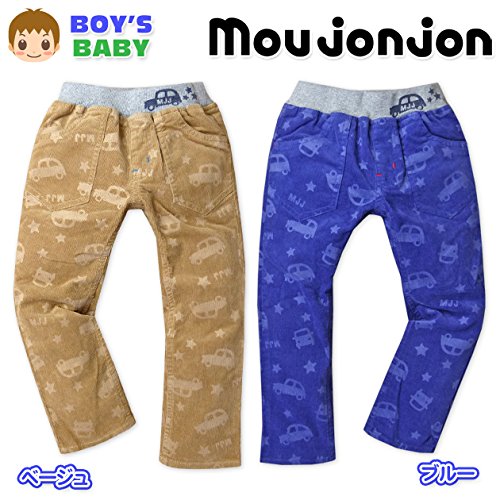 ベビー服 男の子 ロング コールテンパンツ ボトム Moujonjon ムージョンジョン ストレッチ 車柄型押し 男児 ベビー (1.ベージュ/90cm)