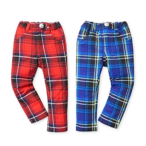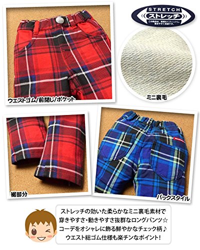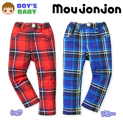 (レッド/95cm) ベビー服 男の子 ロング パンツ Moujonjon ムージョンジョン ボトム チェック柄 ウエストゴム 男児 ベビー