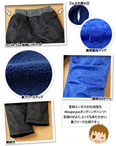 (ブルー/95cm)ベビー服 男の子 ボンディング パンツ ボトム ロング Moujonjon ムージョンジョン 裏フリース タフタ 星柄エンボス 膝ダーツ ウエストゴム 男児 ベビー