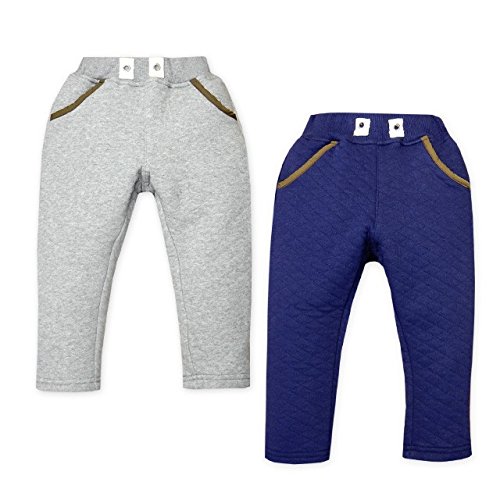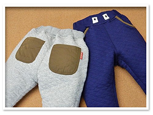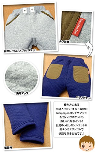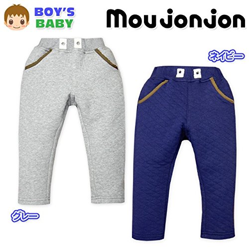 (グレー/90cm)ベビー服 男の子 ロング パンツ ボトム Moujonjon ムージョンジョン ニットキルト 配色ポケット ウエストゴム 男児 ベビー