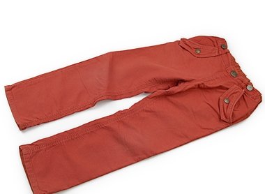 - レンガっぽいオレンジ。ストレッチ性のある生地です。ウエストは総ゴムです。全体的に色褪せがありますがまだまだ活躍してくれそうです。