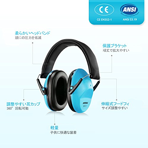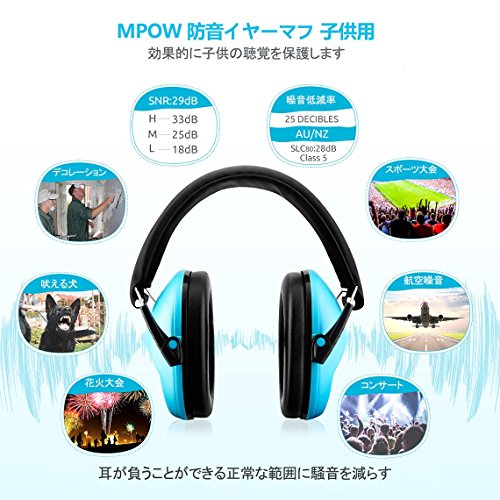 Mpow 防音イヤーマフ キッズ 遮音値25dB 超弾力性 フリーサイズ プロフェッショナル ANSI S3.19&CE EN352-1認証済み 聴覚保護/聴覚過敏/自閉症/騒音対策/勉強等様々な用途に 子供用 誕生日プレゼントにオススメ ブルー