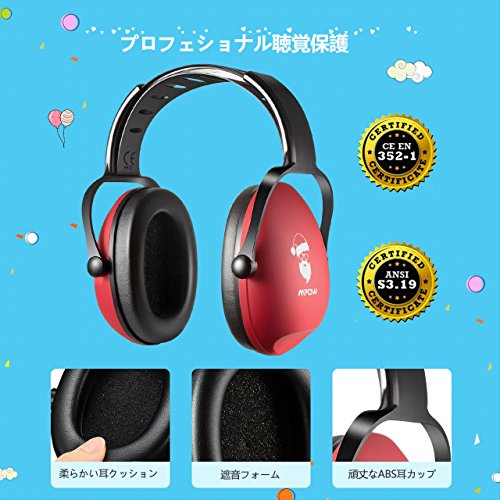 Mpow 防音 イヤーマフ 子供 クリスマス 遮音値22dB 超弾力性 ANSI S3.19&CE EN352-1認証済み 調節可能 聴覚保護/聴覚過敏/自閉症/騒音対策/勉強等様々な用途に プレゼント レッド