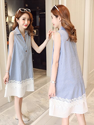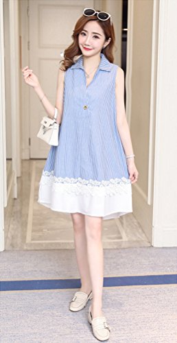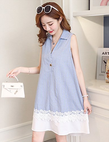 - プレママ も 涼しくて おしゃれ な服が着たい!という希望を叶える レース の模様がかわいい ノースリーブ マタニティ ワンピース です。 ブルー の ストライプ と Vネック が縦のラインを強調し、細見せ効果も期待できます♪