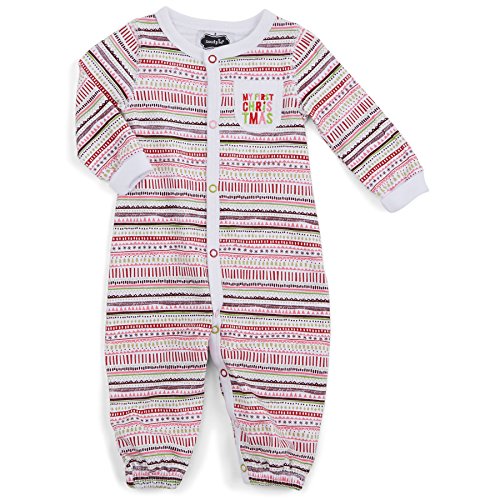 休日のmudpie Baby Girl First Christmas変換可能なガウンは、カラフル、クリスマスパターン上のフォールドオーバー袖口と袖は、伸縮性、カラフル、メタリックなスナップボタンダウンをセンター下部に沿って、キュートなポケットにこの愛らしい衣装を完成させる