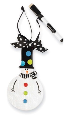 Shaped ceramic holiday ornament, Arrives with a marker for personalization, Topped with a black and white polka dot ribbon for hanging