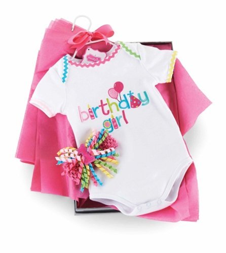 Mud Pie-Baby Girl First Birthday Crawler Outfit-Cotton- 0-9 Months ( Birthday Crawler-Headband) by Mud Pie