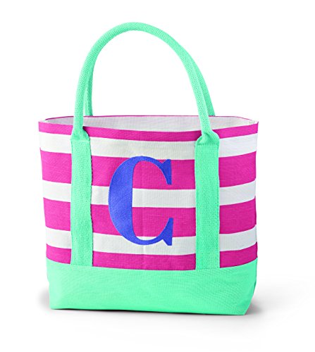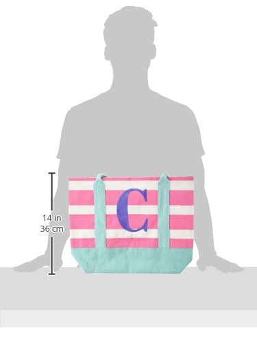 A fun tote with her initial on it; use for play or beach/pool time;Inside is laminate, making it easy to wipe clean;Tote measures approximately 14 x 12