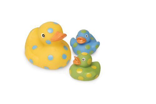 Light up bathtub time or water play with flashing floating polka dot duck toys. Parent duck is 3' x 3.5' and is yellow with blue polka dots. Baby ducks are each 1.75' x 2' one blue with green polka dots and one green with yellow polka dots. Packaged in a box ready for gift giving. Happy farm animals come to play in Mud Pie's EiEiO Collection. For more than 25 years Mud Pie Baby has been combining quality and attention to detail with adorable design flair to create big ideas for little ones.