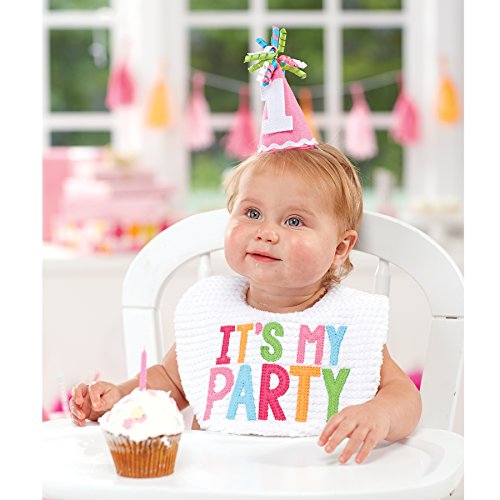 - ふわふわのビブには、カラフルなIT'S MY PARTYの文字付き。