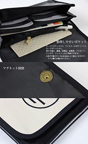 - 通帳や母子手帳、パスポート、ティッシュ、ハンカチなどを入れられるオープンポケット3つ、小銭や落としたくない大事なものを入れるファスナー付きポケット1つ、診察券、保険証、クレジットカードなどを入れられる