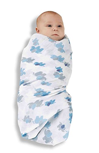 - Mud Pie Baby Boy Elephant Swaddle Blanket Set, Blue