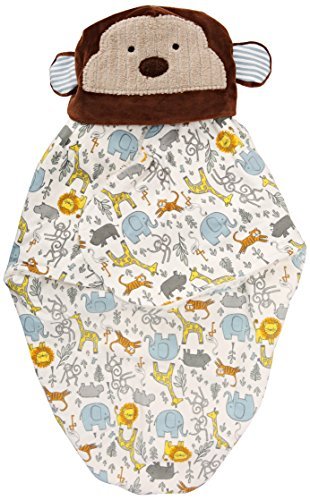 Arrives folded and tied!, Comes with friendly ribbed minky monkey hat., Secure design creates a cozy, womb-like feeling for baby!
