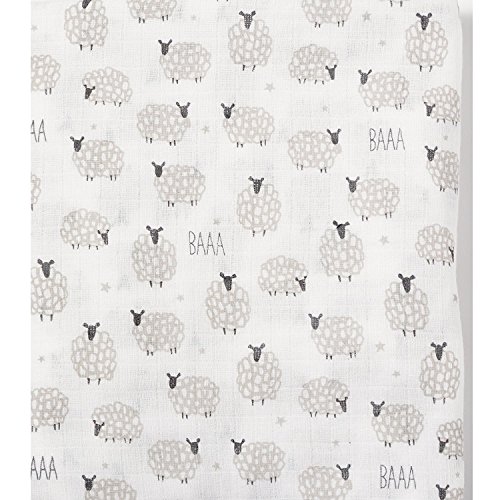 Set of 2 sheep printed cotton interlock swaddle blankets come gift boxed with grosgrain ribbon.