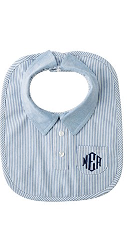 Striped, knit pique bib with oxford collar for any classy baby boy;Velcro closure for easy fit and change;Features monogram able front pocket, making it a fun but personal gift for any occasion
