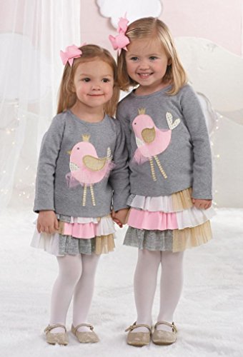 こちらのoohs女の子はこのチュチュスカート・セットを着用するとaahs Mud Pieから。このツーピースセットが設定されていることを杢グレーコットンインターロックトップを持つひよこのアップリケが特徴の、キーホールバック次元の入りの翼チュールでアクセントになっています。には、階層型多層チュチュスカート複数のファブリック製のピンク、ホワイト、ゴールド。どのような季節に最適です。