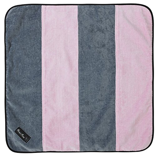 表はふわふわのタオル地、裏地は耐水性ナイロンの、2色の鮮やかストライプが目を引くおむつ替え用マット。