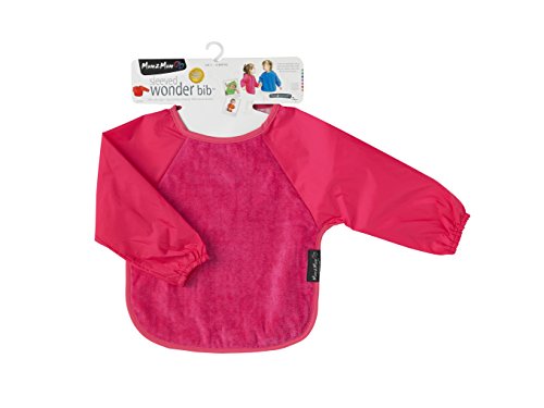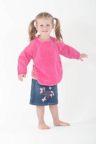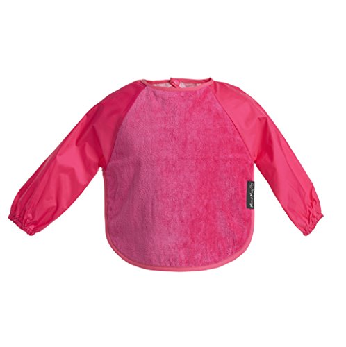- 表地は吸水性に優れたタオル地、裏地と袖は耐水性ナイロン、袖口はゴム入りで、手づかみ食べでも安心。