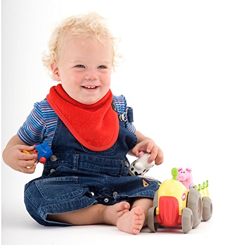 - よだれの多い赤ちゃんのためのビブ。吸水性抜群のタオル地で、裏地には耐水性ナイロンを使用しています。