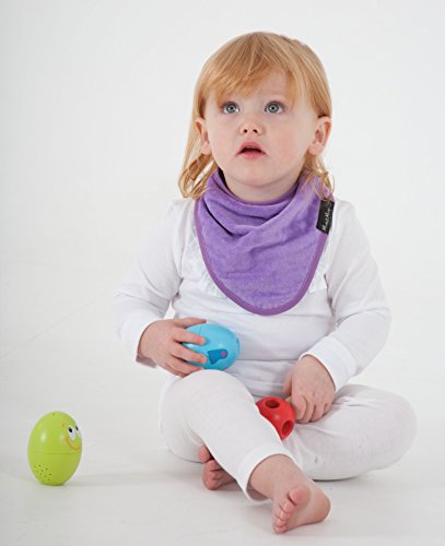 - よだれの多い赤ちゃんのためのビブ。吸水性抜群のタオル地で、裏地には耐水性ナイロンを使用しています。