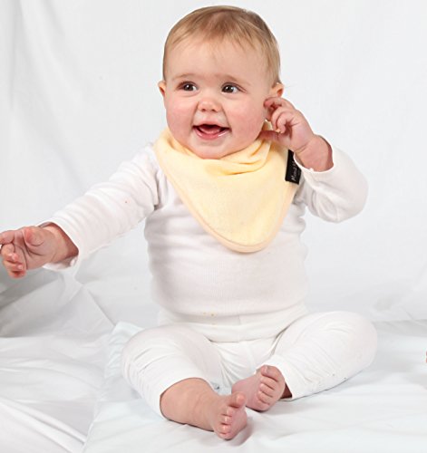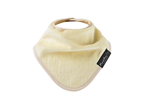 - よだれの多い赤ちゃんのためのビブ。吸水性抜群のタオル地で、裏地には耐水性ナイロンを使用しています。
