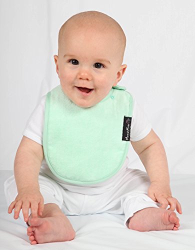 - ミルクの吐き戻しもしっかり吸収する、新生児用ビブ。ボタンが後ろではなく横に付いて着脱が簡単。