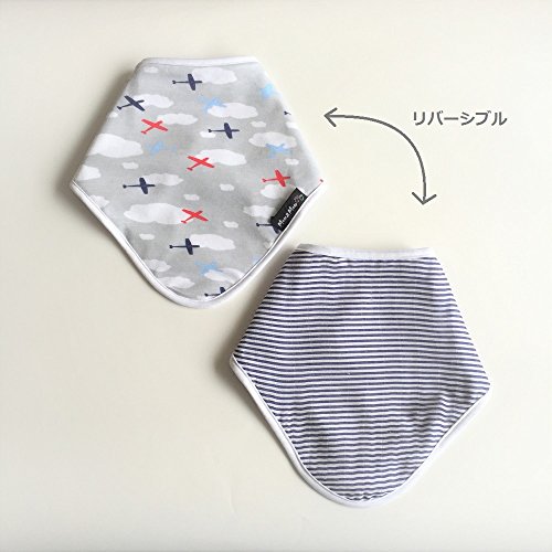 - 4層仕立てのリバーシブル。竹繊維とモスリンコットンで外側はサラッ・ふわっ、中地は防水でよだれ対策。