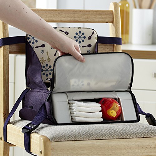 - Two items in one, portable toddler seating and multi-compartment bag