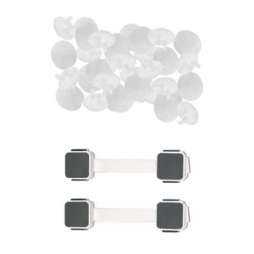 Secures cabinets, drawers, appliances, toilet seats, and more;Requires dual button operation to release, release and rotate when not in use; Simply push back to fasten;Flexible strap allows latching around corners;Reduces the hazard of open electrical outlets;Exceeds the safety standard for children's choking hazard