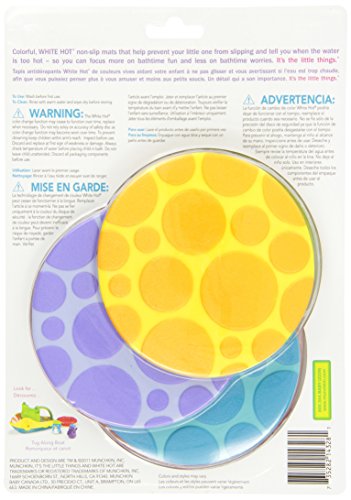 A set of 6 Grippy Dots, by Munchkin, are rubberised textured grips which help prevent your toddler from slipping in the bath. Fun bright colours make them easy for toddlers to see at the bottom of the bath. The word 'HOT' is revealed on one of the dots when the bath water is too hot for baby (about 40 C). Easy to remove and reposition in the bath.