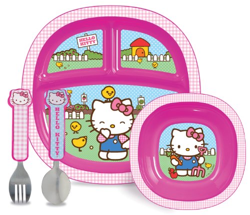 The Hello Kitty Toddler Dining Set by Munchkin makes mealtime much more exciting for your little one. Set includes a divided plate, bowl and fork and spoon specially designed to help toddlers learn to self-feed. This BPA and phthalate free dining set feat