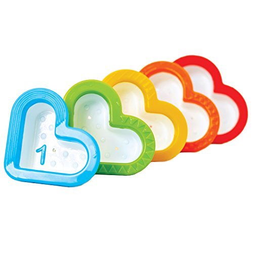 These cups won't strain your heart, because they're simply made with too much love! Each set of 5 comes with multicolor edges, and each edge has a unique pattern to stimulate baby's motor skills upon touching. What's more is that all of Hearts edges are made with a soft-touch material that has no paint, and is safe for baby to put in his or her mouth (something that's just bound to happen!) to help prevent unwanted injuries. These cups are multipurpose - as they can stack, scoop, strain, spill, pour and rinse - meaning they will occupy baby for hours on end in the tub. Also, numbers help your child learn to count, while large-to-small nesting helps build hand-eye coordination and teach sizes. Give your child a little piece of your heart with Hearts.
