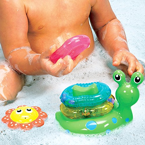 The Snail Stacker makes bath time fun time. This snail floats upright in the water. It comes with 3 stacks and sort rings with interactive toy. The inside flower doubles as a squirter makes bath time fun. This is suitable for children of the age of 9+ mon