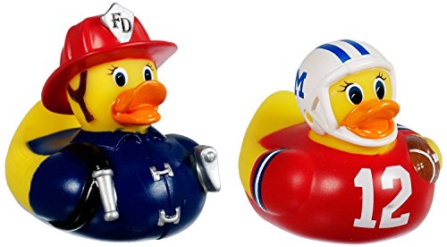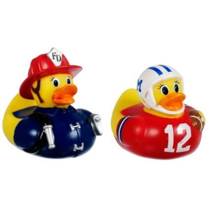 A fun twist on the classic yellow duck. This 2 count comes with one Fireman duck and one Football duck. Both ducks are equiped with a White Hot technology disc that tells you if the tempurature of the bath water is too hot. They're compact and portable making them great for traveling or that next trip to visit grandma and grandpa.