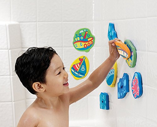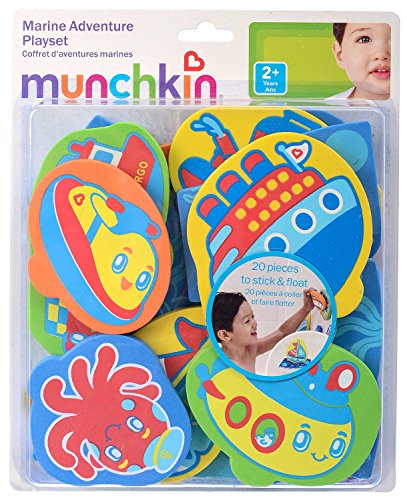 Your little one is going to have so much fun in the tub with Munchkin's marine adventure foam playset. Set contains 20 durable foam pieces that stick to tub walls when wet. Boat and animal pieces slide neatly into water pieces to create floating vessels that encourage multiple play patterns. Your little one will spend hours building waterways on the wall, or floating boats on the water. Perfect for fans of Munchkin's foam bath letters and numbers, suitable for ages 2 years plus.