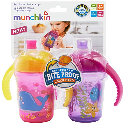 - Munchkin Click Lock 7oz Bite Proof Decorated Sippy cup, Trainer Cup 2pk Colors may vary