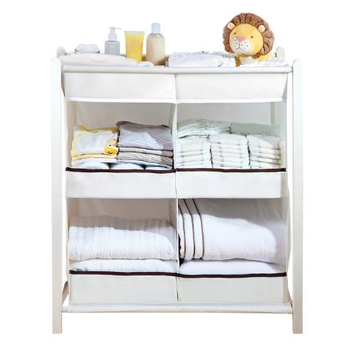 You're so busy keeping a watchful eye on your little one that hunting for diapers, wipes, onesters, and toys is not exactly on your to-do list. Keep all your baby paraphernalia in one place with the easy to assemble Nursery Essentials Organizer by Munchkin. Key items such as diapers and baby wipes can be kept in plain view in the top storage area, while bulkier items like blankets, clothing, and towels can be placed in the four large storage bins below. This baby storage solution is not just enormously useful but aesthetically pleasing as well - its neutral white color and chocolate trim is sure to fit in with any nursery decor.