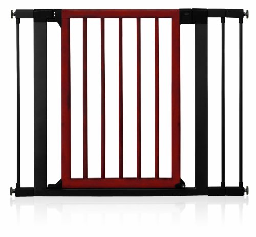 The Munchkin Wood and Steel Designer Gate offers a strong, sturdy design that will keep your baby safe. Designed with a steel, U-shaped power frame for stability, the gate features natural-grain dark wood that complements the style of your classic home. It's easy for adults to open with one hand and shuts firmly with a simple push. The designer gate includes extensions that provide a custom fit and works for all areas of your home.