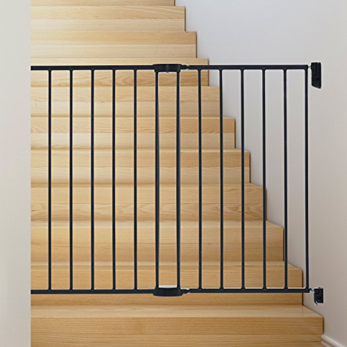 Fits openings 28-45 wide, 29 tall;Easy to use; simply push gate to close and lock;Unique tilting hinge mechanism puts less stress on walls;Quick-release, detachable gate removes easily when you have company over;One-way opening for use on stairs; two-way opening for use in doorways