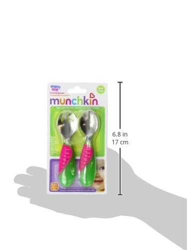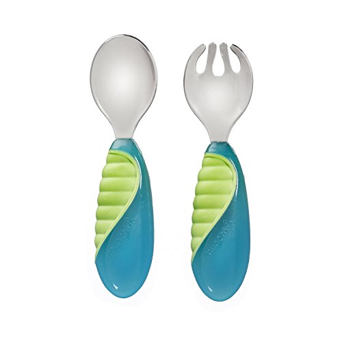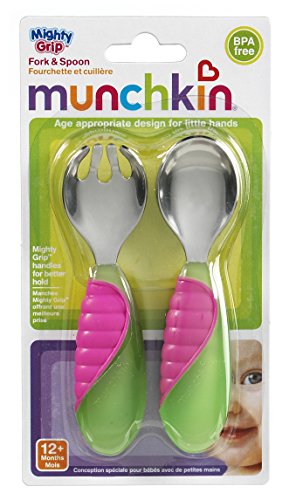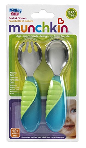 Large handles are easy to hold and ideal for right and left hand. Helps toddlers learn to feed themselves. Fork tines are rounded for safety.BPA and PVC free. Colors may vary, you may receive in one of the following colors: green/pink or blue/green.