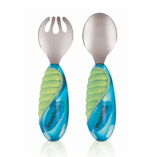 munchkin マンチキン ギュッと握れるフォークとスプーン マイティグリップ フォーク&スプーン ブルー