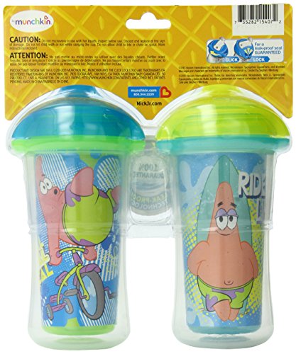 Let your little one sip without the spills with the 9 ounce SpongeBob SquarePants Click Lock Insulated Sippy Cup by Munchkin. It features leak-proof protection you can see, feel and hear - just turn the lid until you hear the click and you are all locked