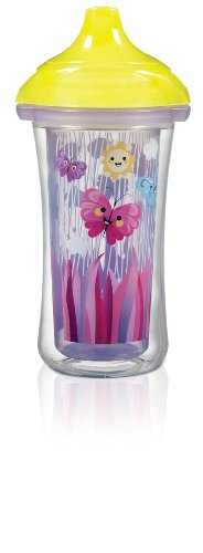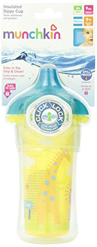 Click Lock leak-proof design. Insulated to keep drinks cool. Easy-to-clean, one-piece spill-proof valve. Top rack dishwasher safe, BPA free. 9 plus months.