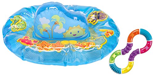 For use during tummy time or when sitting in a high chair. Helps teach cause and effect;Chase 9 island pals and 15 beads around outer ring;3-d inflatable center piece. 3 months and up;Features 4 different teething surfaces easy for baby to grasp, hold and chew;Twists into different shapes and makes rattling sounds, helping develop motor and sensory skills. BPA-free
