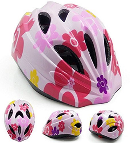 軽量 子供用 自転車 ヘルメット キッズ ジュニア アジャスター付き 調節可能 (花柄, M(50~58cm))
