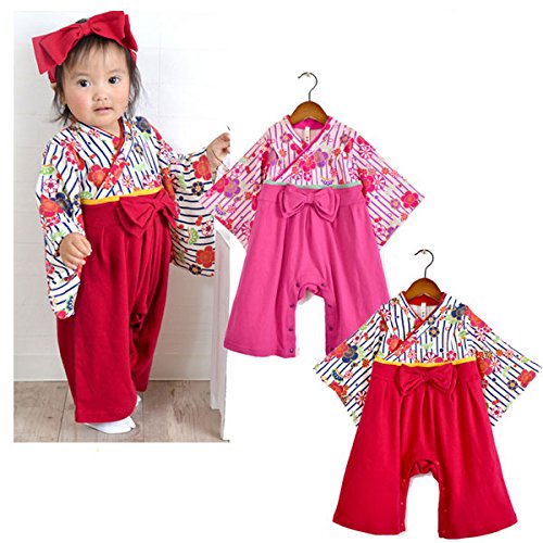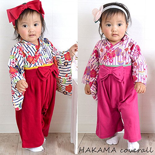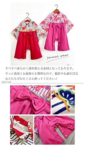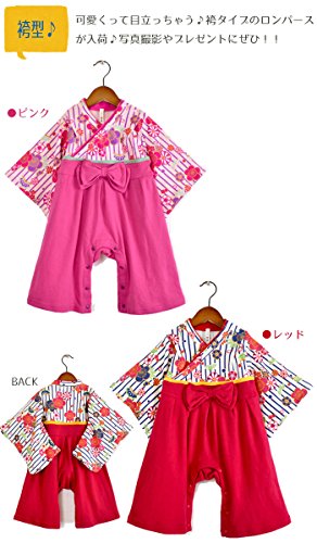 子供服 子ども キッズ 袴ロンパース 振袖 赤ちゃん ベビー カバーオール お祭り 浴衣 70,80,90 (90, ピンク)