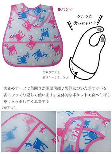 ポケット付きお食事エプロン ナイロン素材 出産祝い お食事用 保育園 スタイ ベビー 赤ちゃん プレゼント ビニール 折り畳み EVA 防水 入園入学 セール (ベア)